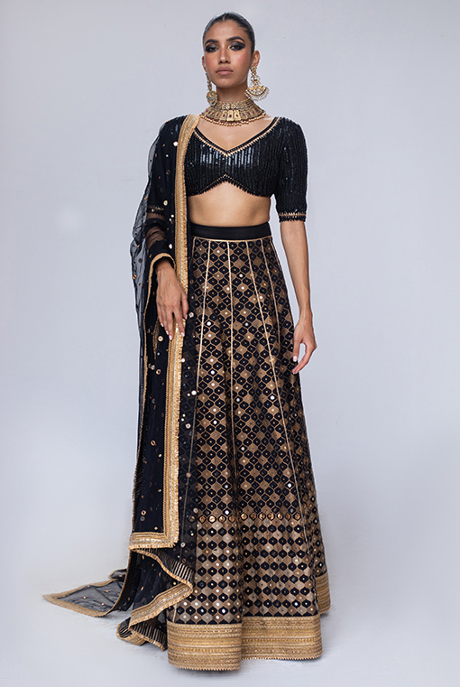 A black ensemble is a must for bridal trousseau, intricately hand embroidered in beads, sequins & mirrors.