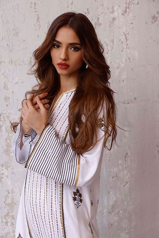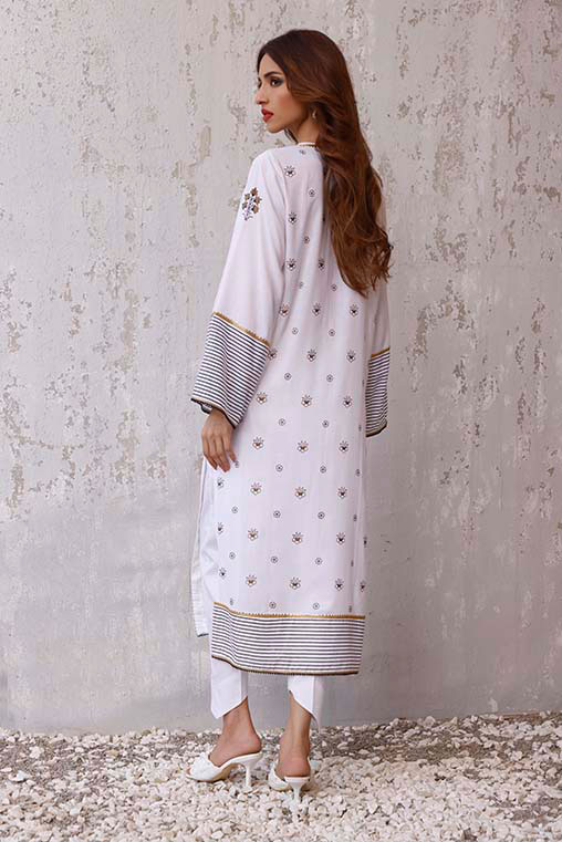 A straight cut paneled shirt, beautifully hand printed in black & gold on white base.